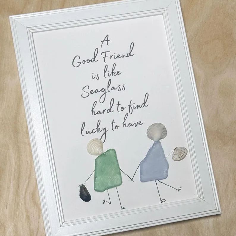 Celebrate the rare and precious bond of friendship with our enchanting "A good friend is like seaglass hard to find lucky to have." Handcrafted with meticulous care, this piece combines the symbolism of the sea glass with the heartfelt sentiment that best friends are indeed a rare and cherished find.