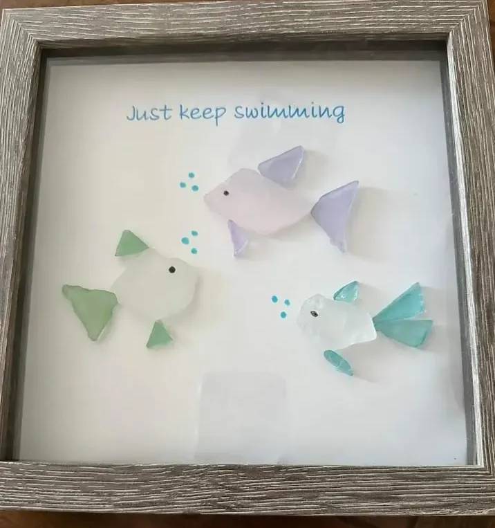 Inspire resilience and determination with our "Just Keep Swimming" sea glass art. Handcrafted with love and a touch of underwater charm, this unique piece is a reminder that no matter the challenges you face, the key is to keep moving forward with unwavering determination.🐟🌊🫧