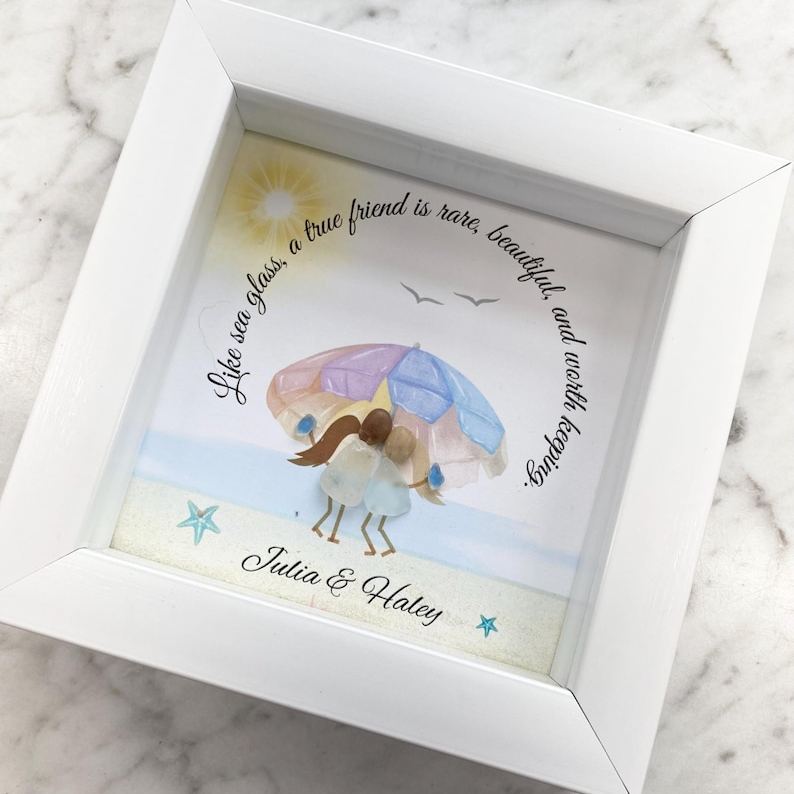 This fun beach-themed sea glass artwork was created for friends who may not live close but share unforgettable memories, trips, and a lifelong bond. Whether separated by states, countries, or coastlines, this personalized keepsake serves as a reminder that true friendship is never limited by distance.
