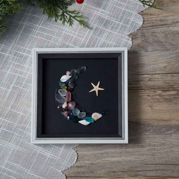 🌊Give your love a touch of coastal magic with this Sea Glass Moon Art Frame!🌙💙Crafted for romance,each piece of genuine sea glass has been shaped by endless tides, symbolizing a love that grows more beautiful with time.💌