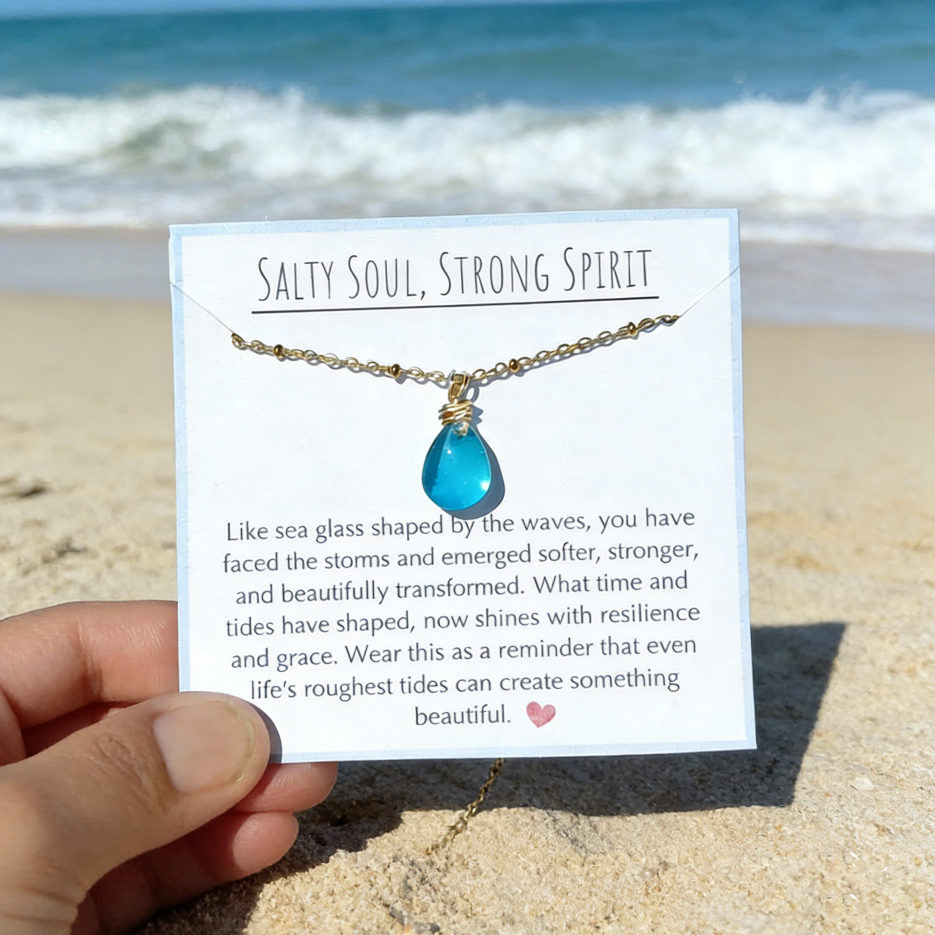 Like sea glass shaped by the waves, this necklace celebrates the strength that comes from weathering life’s storms. It’s the perfect gift to remind someone they’ve emerged softer, stronger, and beautifully transformed — a daily reminder that even rough waters can create something radiant.